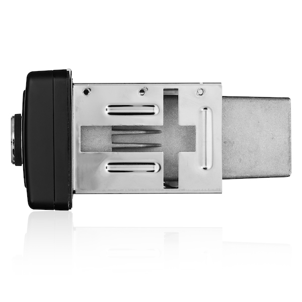 An optically bonded, tempered glass screen allows users to view track information on a 3″ monochrome LCD display.