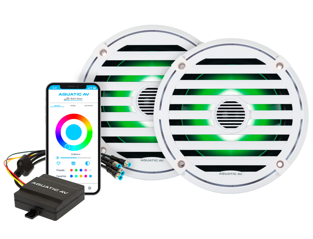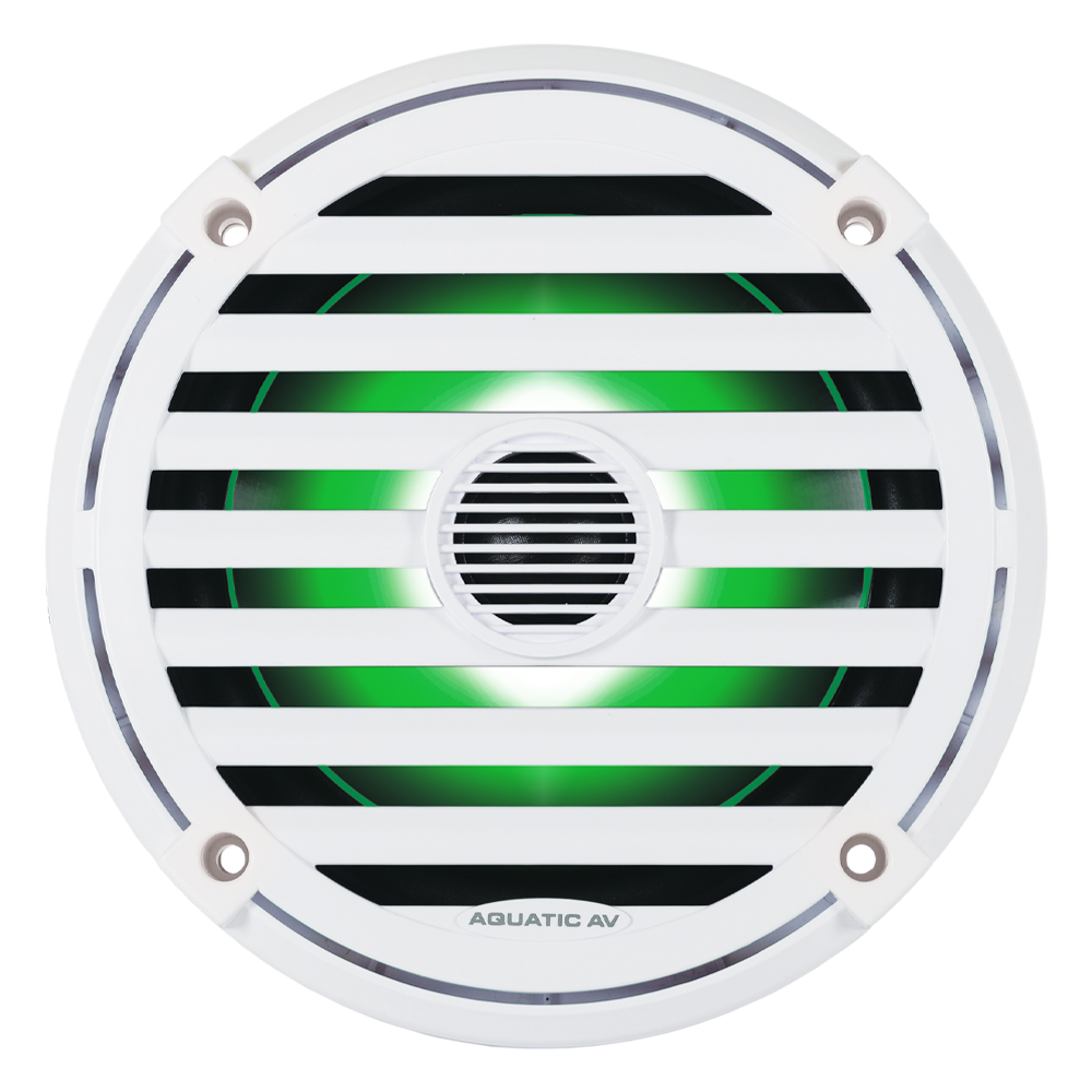 The ELITE 6.5″ RGB Waterproof Speakers (White) represent the best marine speakers in classically-styled waterproof sound systems with customizable lighting when paired with our RGB Controller (RG100) and free Aquatic AV app.